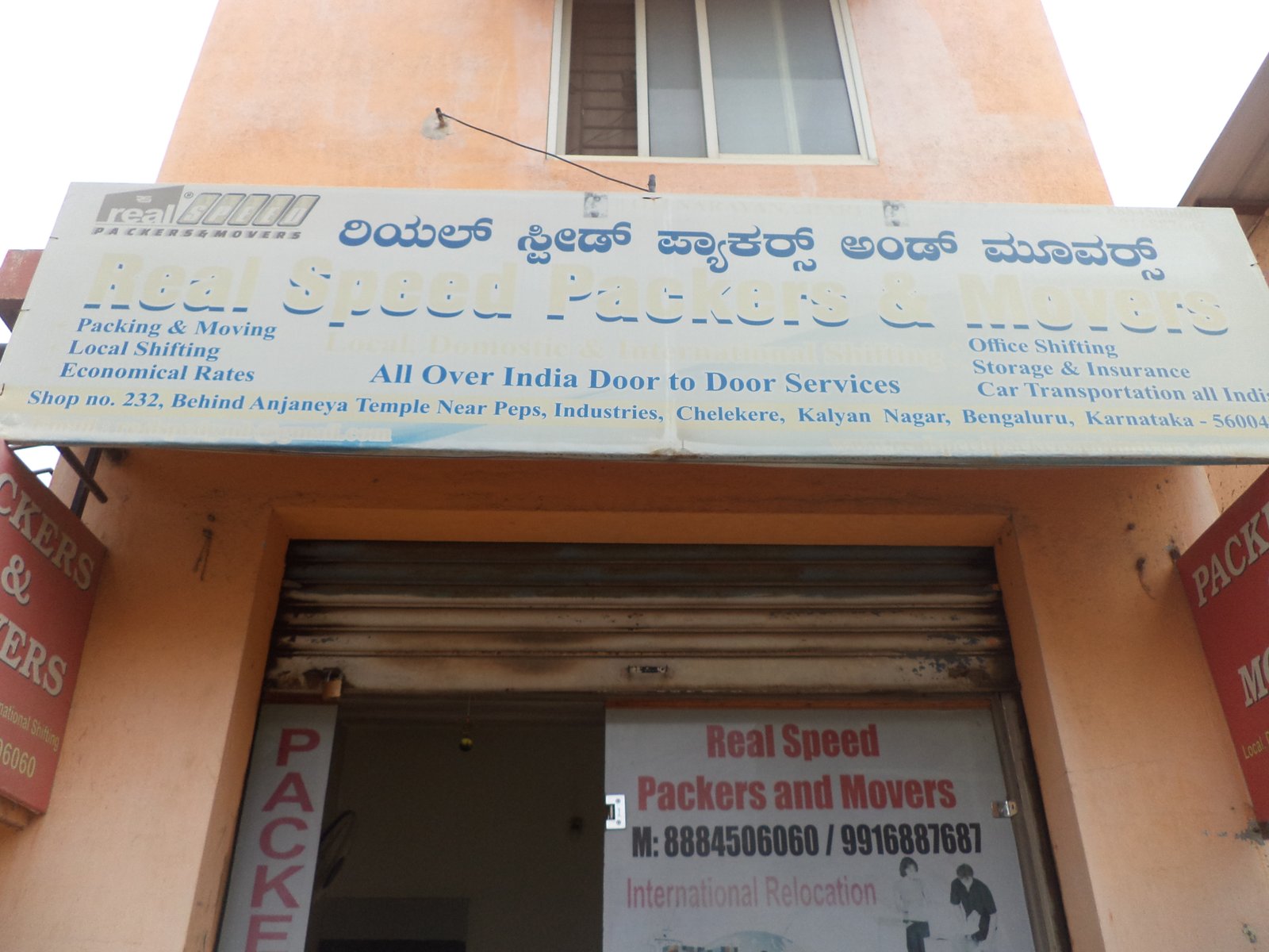 Office Address of Real Speed Packers and Movers Bangalore-20/3, Near, Anjaneya Temple St, Chellikere, Babusabpalya, Kalyan Nagar, Bengaluru, Karnataka 560043